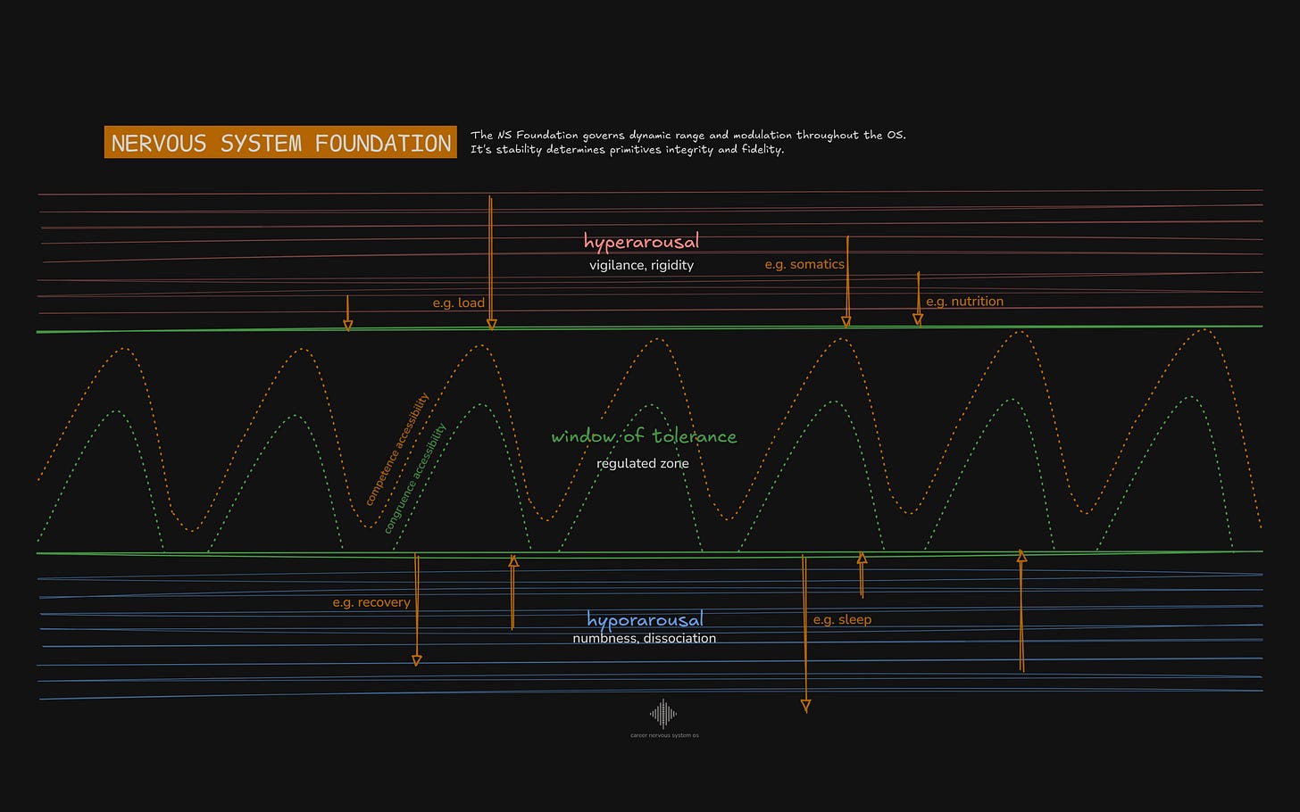 Nervous System Capacity: Recovery rate, current load, regulation anchors.