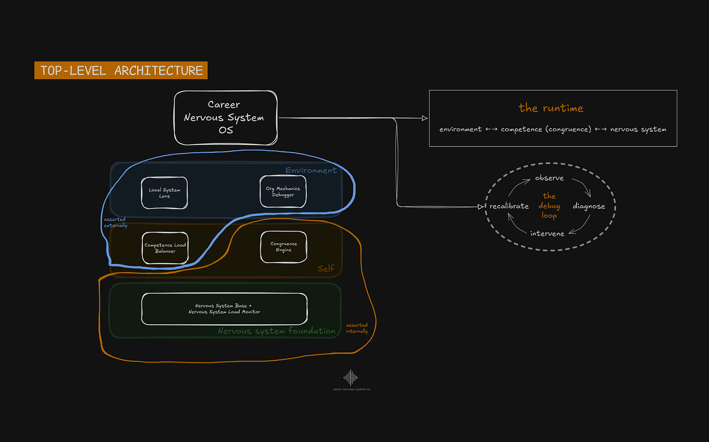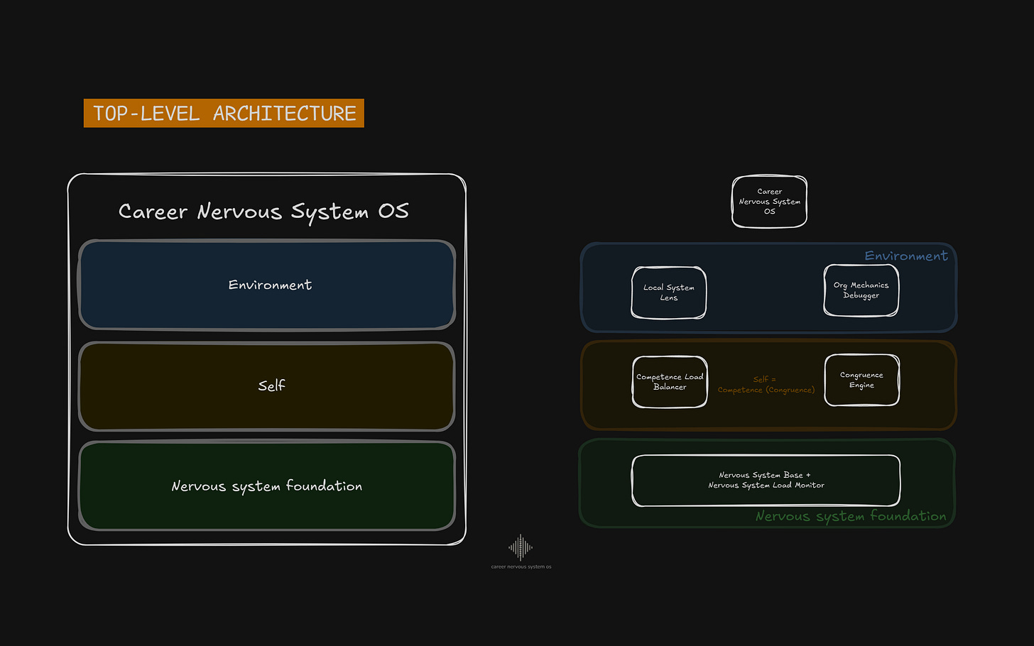 It provides the foundational system map that governs how career input is metabolized through the OS layers.